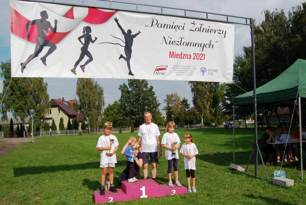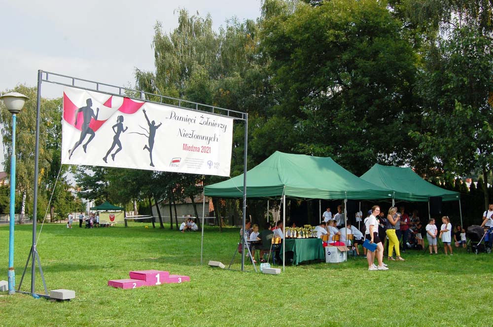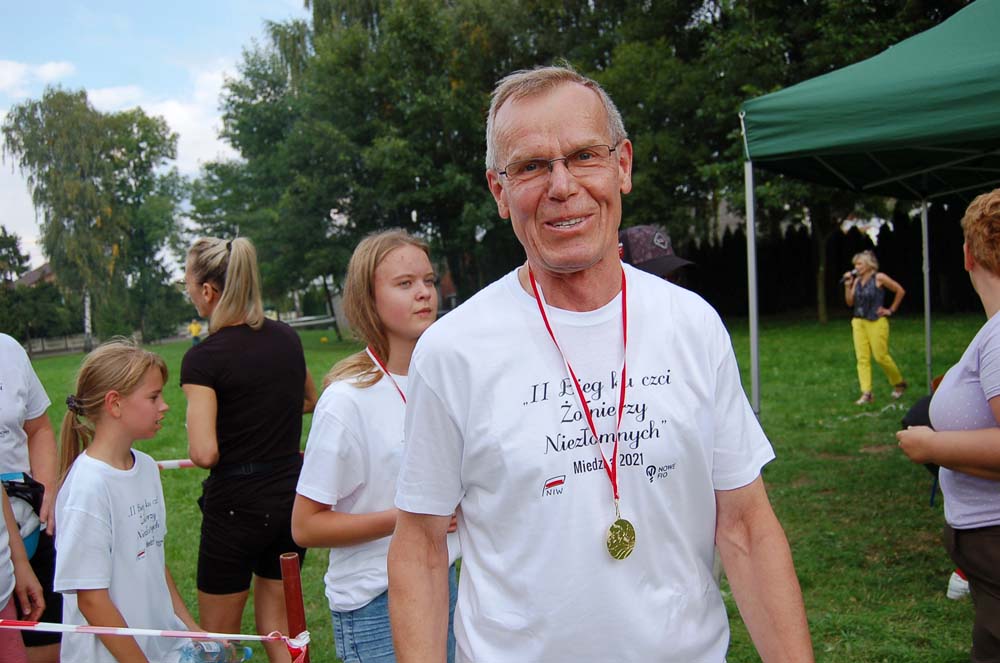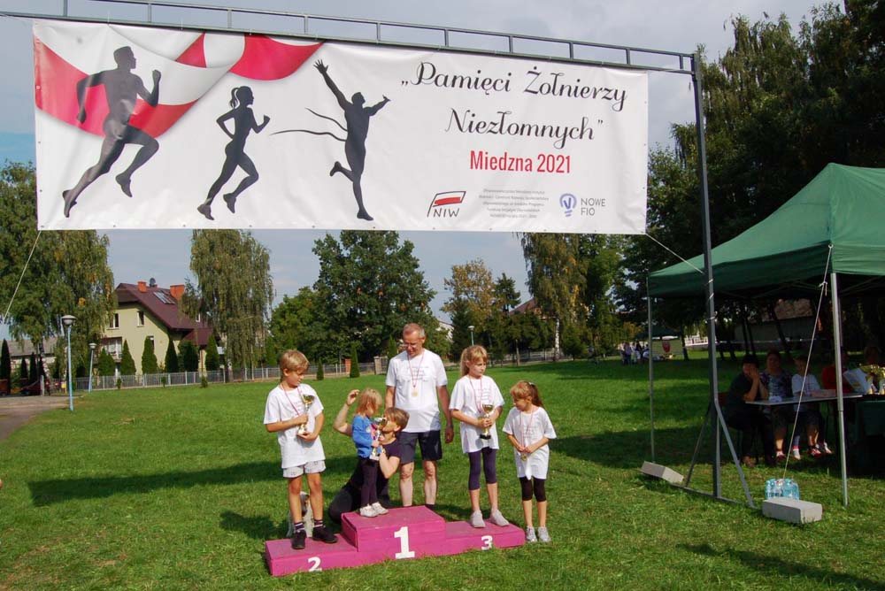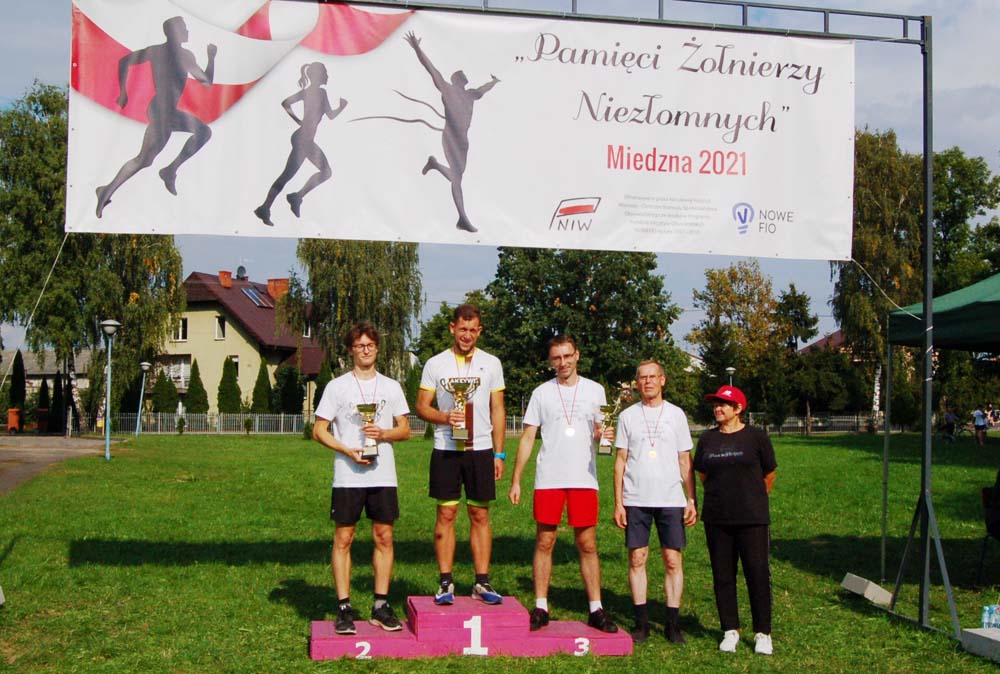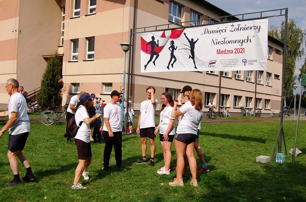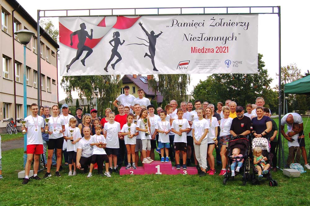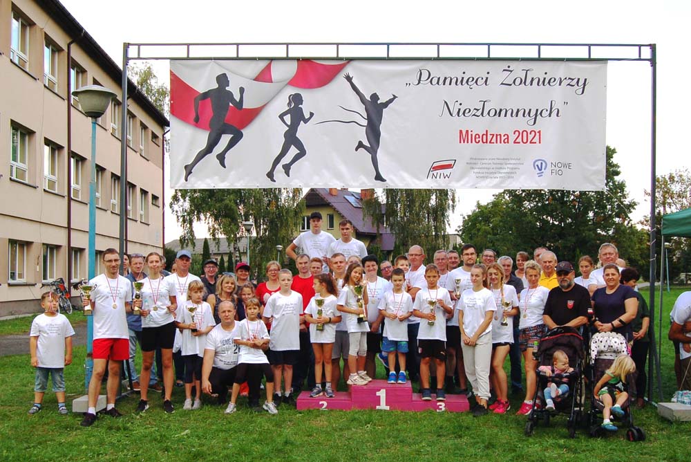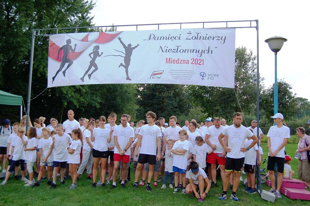 12 września ulicami Miedzny przebiegło 103 uczestników w hołdzie Niezłomnym. Każdy uczestnik otrzymał koszulkę z nadrukiem, medal a zwycięzcy wyłonieni w czterech kategoriach- puchary. Adresaci zadania wysłuchali prelekcji wygłoszonej przez koordynatora projektu Bożennę Kopania, która przybliżyła zebranym postać majora Zygmunta Szendzielarza ps. Łupaszka, Józefa Franczaka ps. Lalek, Danuty Siedzikówny ps. Inka i Feliksa Selmanowicza ps. Zagończyk. Ponadto zwróciła uwagę na funkcjonujące w społeczeństwie różne poglądy na temat bohaterstwa Niezłomnych. Na zakończenie prelekcji chwilą ciszy uczczono pamięć Żołnierzy Polskiego Podziemia antykomunistycznego. Biegacze, kibice i zaproszeni goście integrowali się przy grillu słuchając płynących z głośników pieśni i piosenek patriotycznych. Dodatkową atrakcją były zawody strzeleckie przeprowadzone przez Stowarzyszenie Bractwo Strzeleckie Salwa z Wołomina o puchar prezesa Stowarzyszenia “Skarbiec” Ewy Chomżyńskiej, w których wzięło udział 53 osoby. Wyniki zawodów strzeleckich można było śledzić na stronie www.salwa.pl.