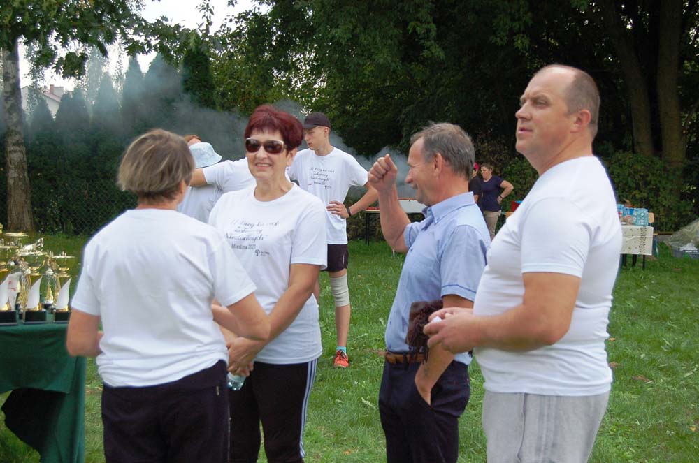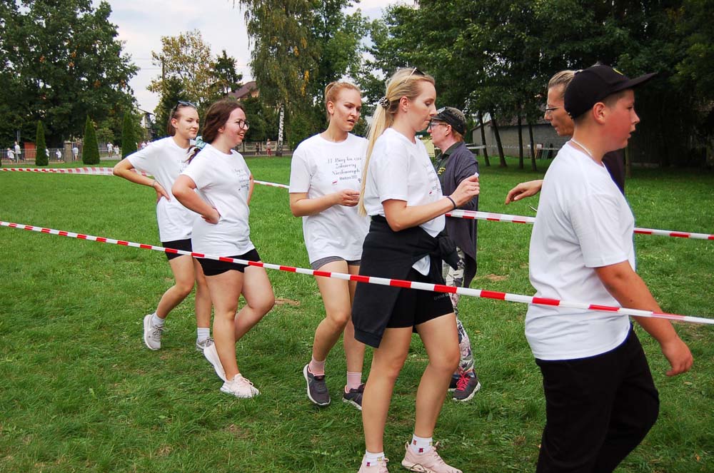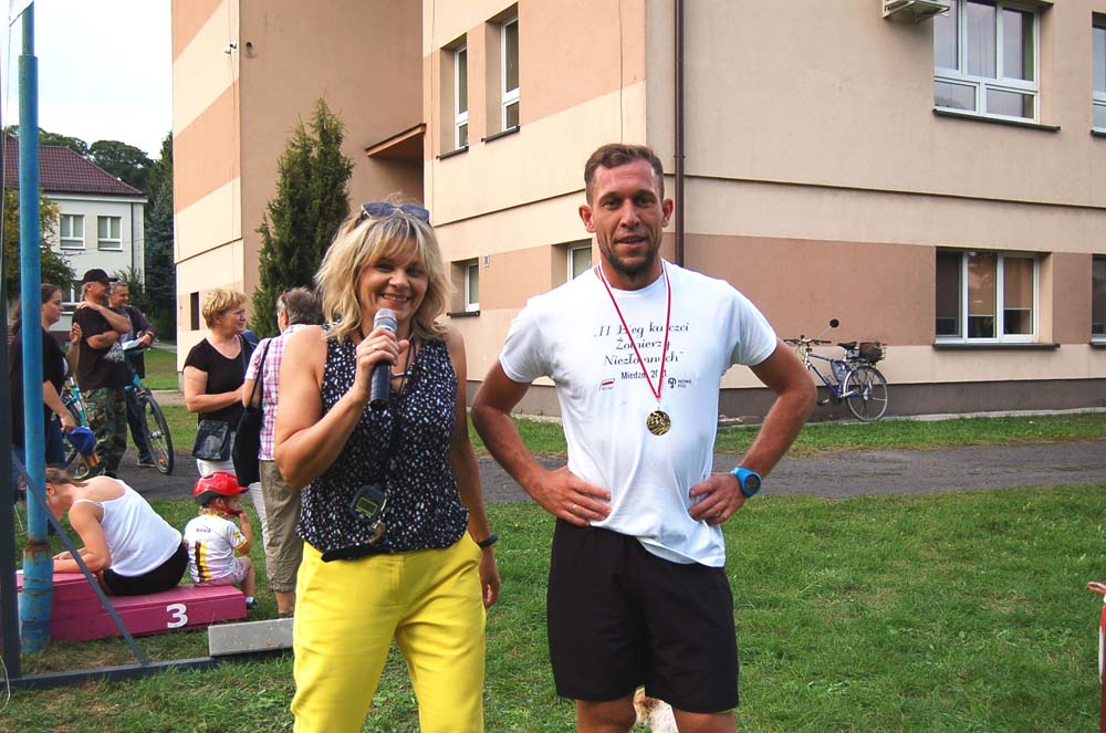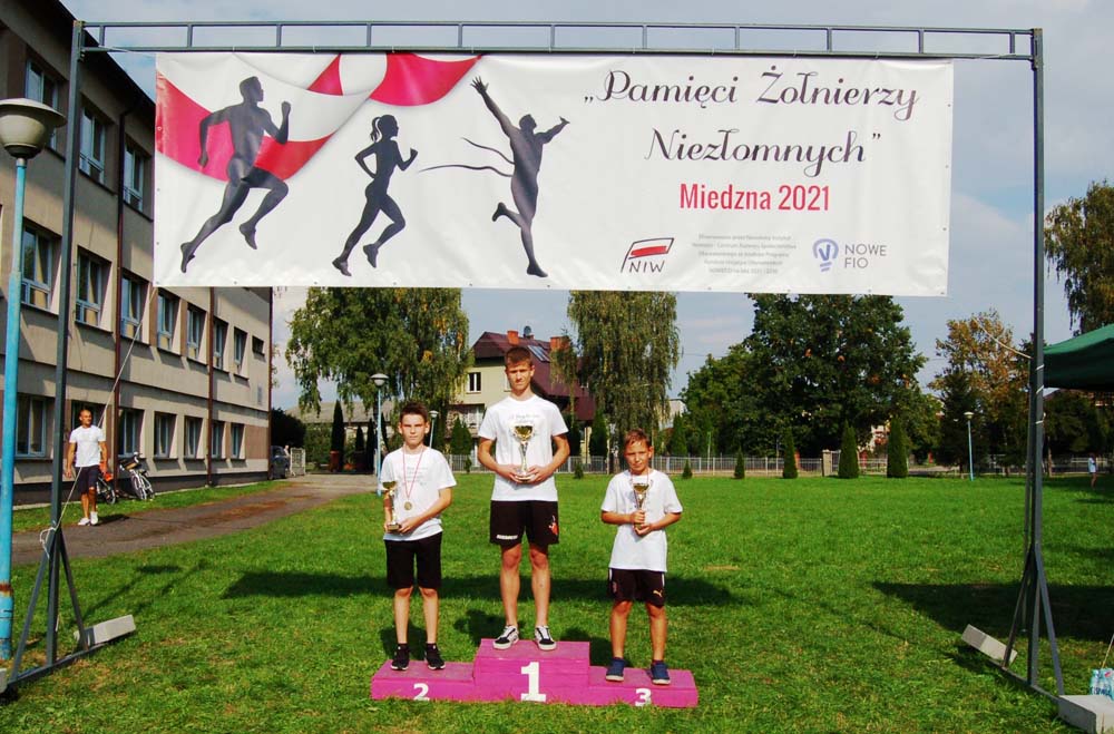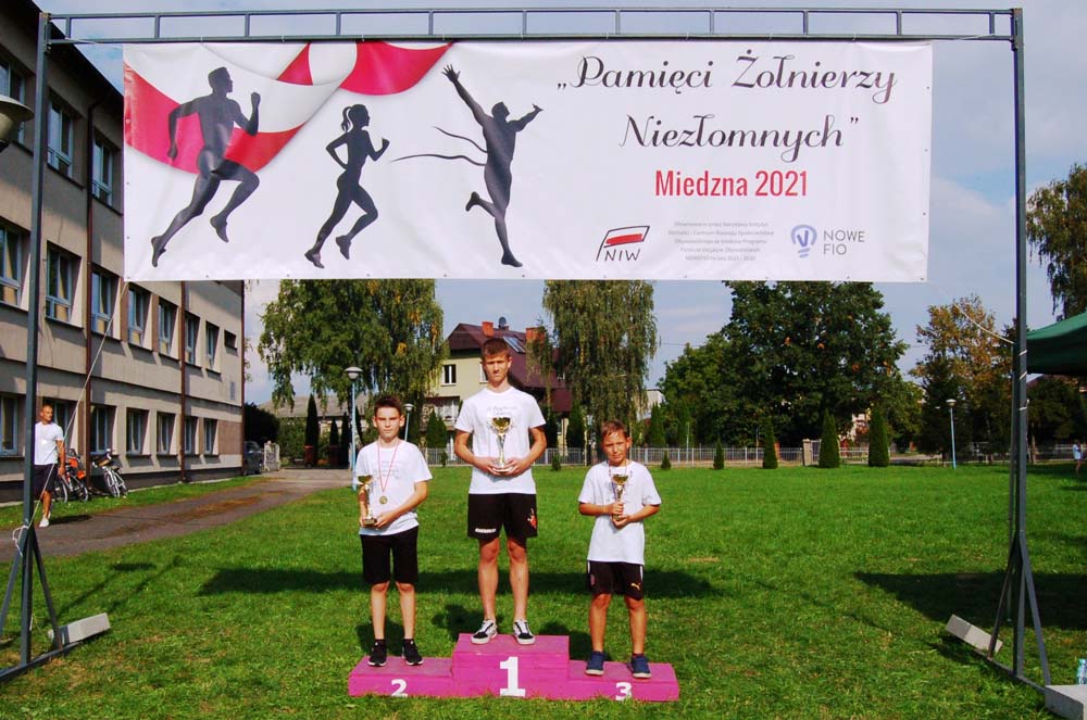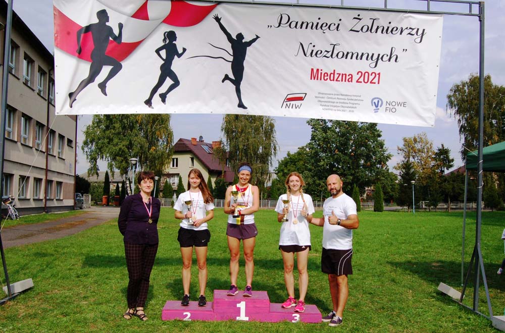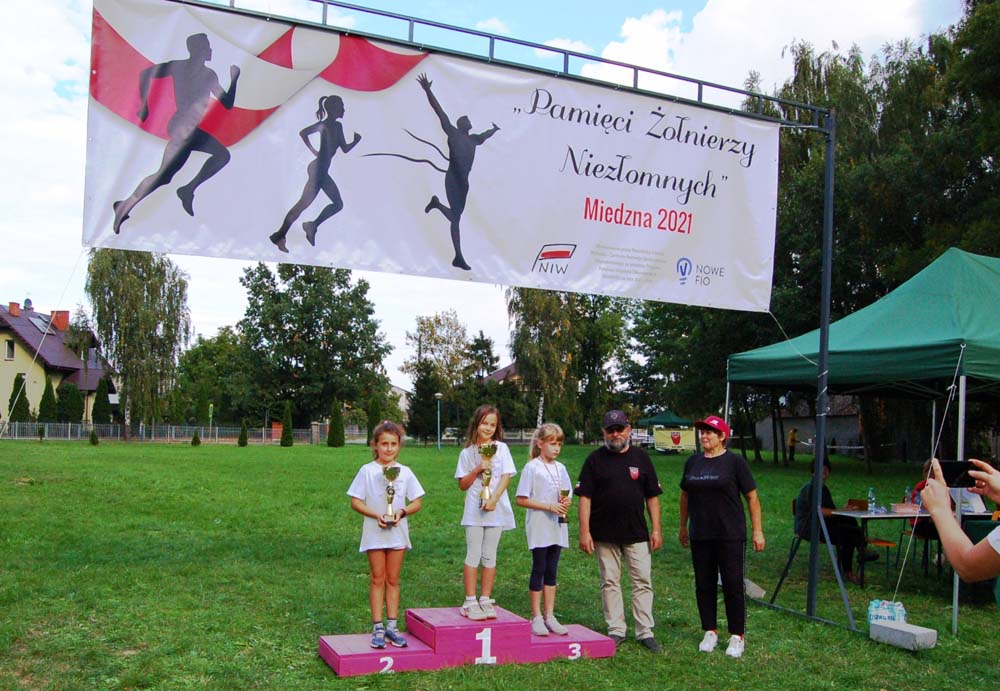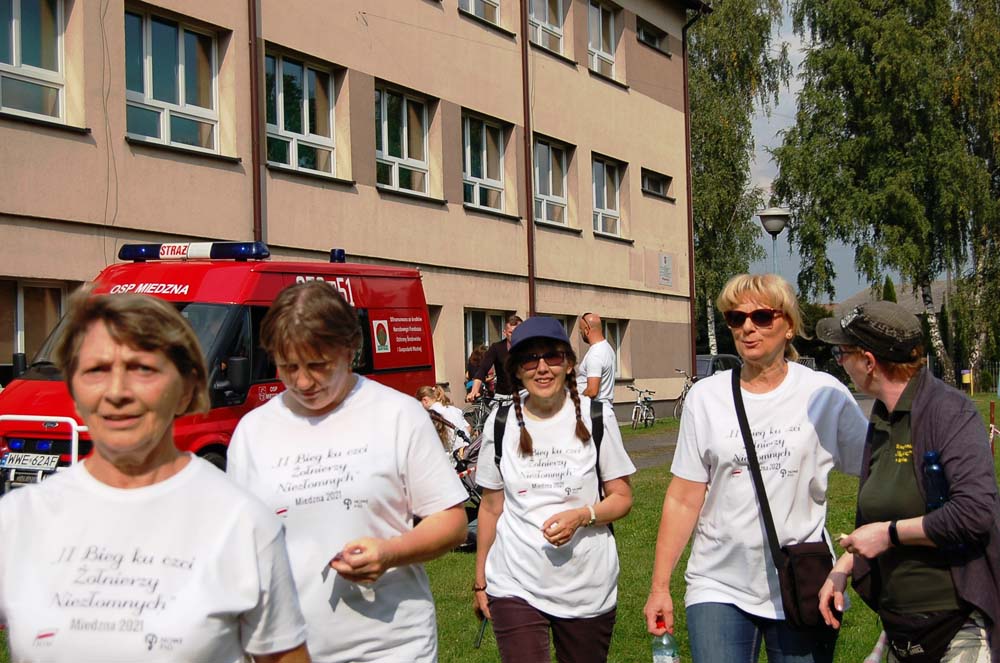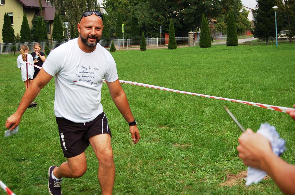 12 września ulicami Miedzny przebiegło 103 uczestników w hołdzie Niezłomnym. Każdy uczestnik otrzymał koszulkę z nadrukiem, medal a zwycięzcy wyłonieni w czterech kategoriach- puchary. Adresaci zadania wysłuchali prelekcji wygłoszonej przez koordynatora projektu Bożennę Kopania, która przybliżyła zebranym postać majora Zygmunta Szendzielarza ps. Łupaszka, Józefa Franczaka ps. Lalek, Danuty Siedzikówny ps. Inka i Feliksa Selmanowicza ps. Zagończyk. Ponadto zwróciła uwagę na funkcjonujące w społeczeństwie różne poglądy na temat bohaterstwa Niezłomnych. Na zakończenie prelekcji chwilą ciszy uczczono pamięć Żołnierzy Polskiego Podziemia antykomunistycznego. Biegacze, kibice i zaproszeni goście integrowali się przy grillu słuchając płynących z głośników pieśni i piosenek patriotycznych. Dodatkową atrakcją były zawody strzeleckie przeprowadzone przez Stowarzyszenie Bractwo Strzeleckie Salwa z Wołomina o puchar prezesa Stowarzyszenia “Skarbiec” Ewy Chomżyńskiej, w których wzięło udział 53 osoby. Wyniki zawodów strzeleckich można było śledzić na stronie www.salwa.pl.