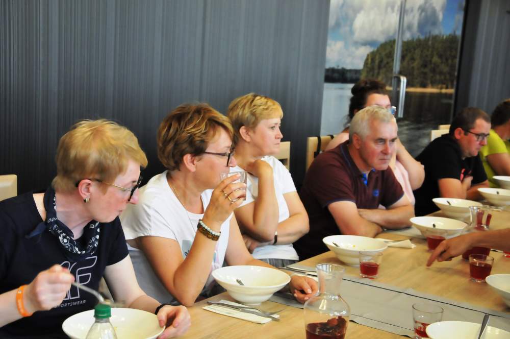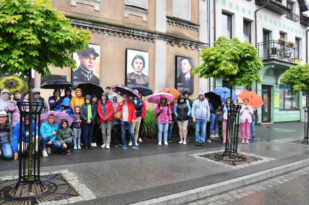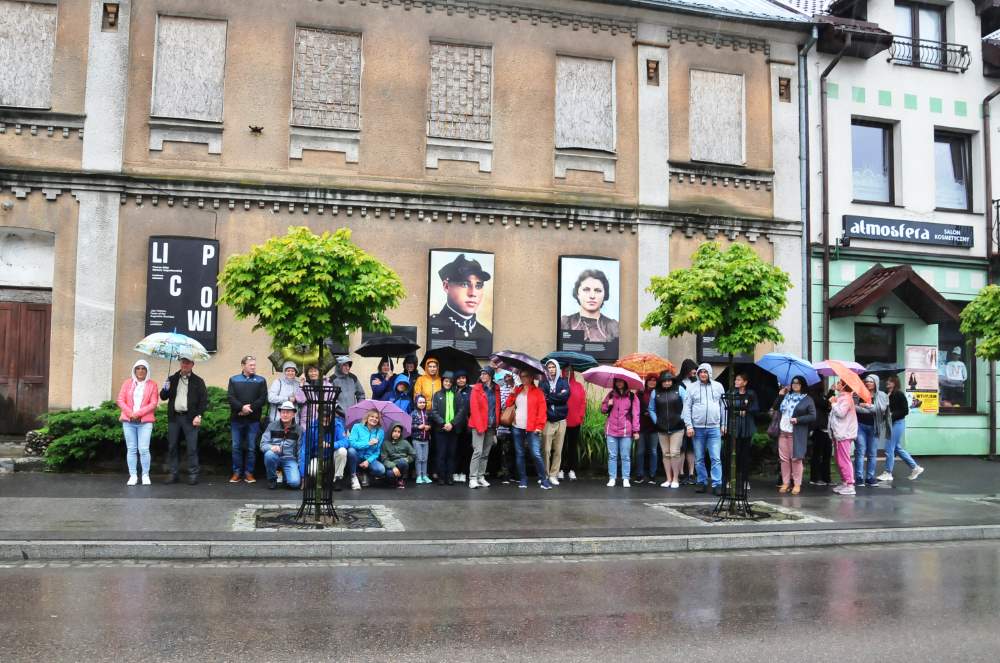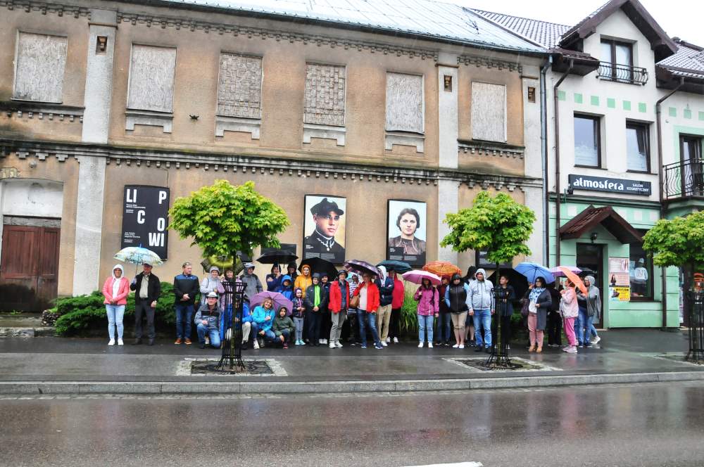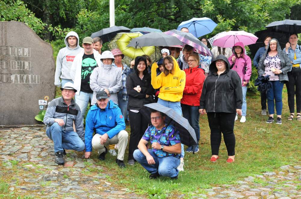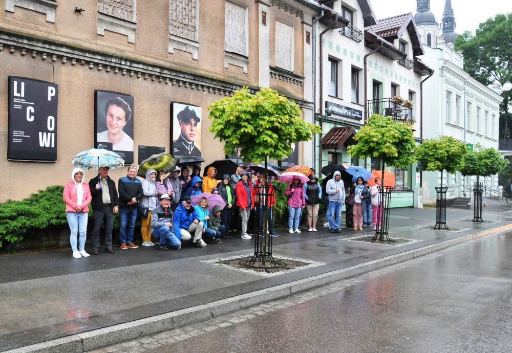 Mimo deszczu kilku odważnych uczestników wyjazdu zrobiło zdjęcie pod tym jakże wymownym Pomnikiem Obławy Augustowskiej. Ostatnim historycznym punktem wyjazdu był tzw. “Dom Turka” w Augustowie. Od początku 1940 do czerwca 1941 kamienica ta była siedzibą NKWD. Areszt umiejscowiony był w podziemiach, zaś na wyższych kondygnacjach znajdowały się biura. W budynku więziono przeciwników władzy radzieckiej oraz osoby przeznaczone do deportacji w głąb ZSRR. NKWD ponownie zajęło budynek jesienią 1944. Od 1945 do 1956 w budynku mieściło się UB. UB torturowało więźniów, W lipcu 1945 budynek był jednym z miejsc przetrzymywania osób schwytanych podczas obławy augustowskiej. W drodze powrotnej zjedliśmy obiad.