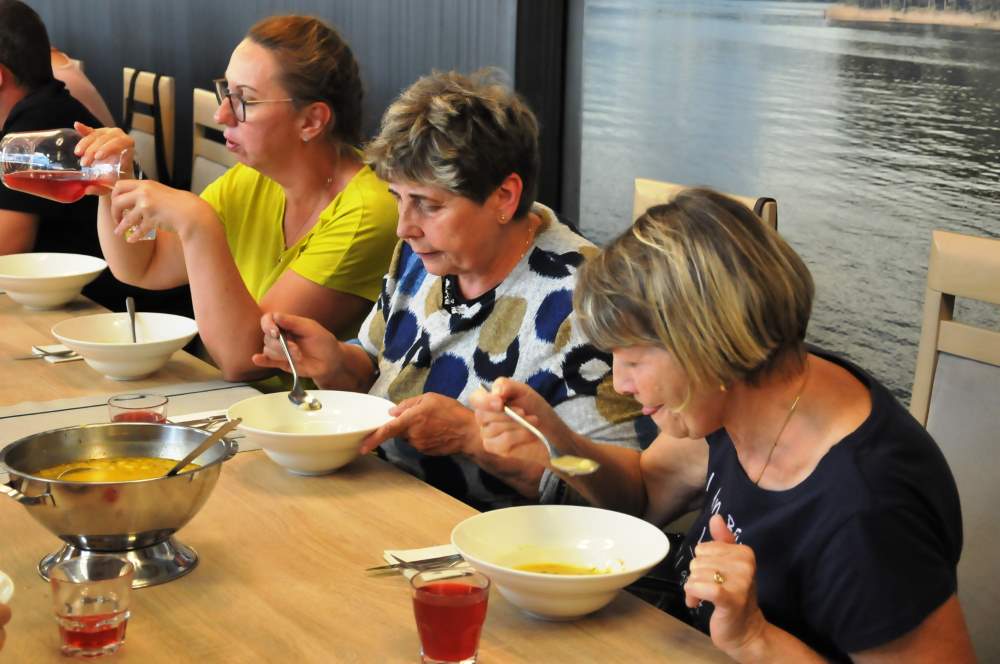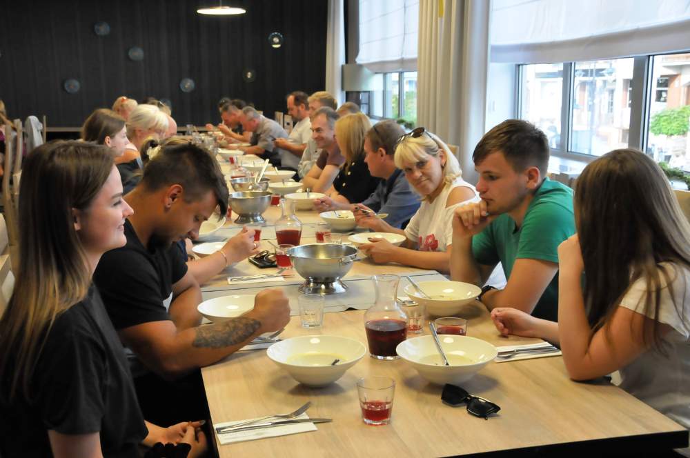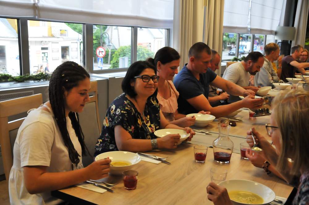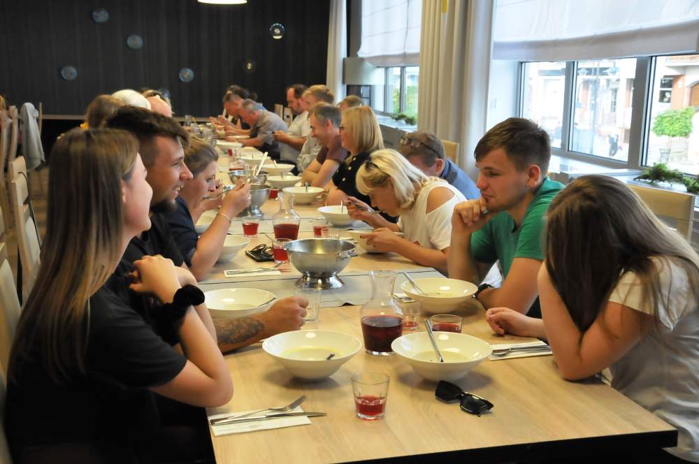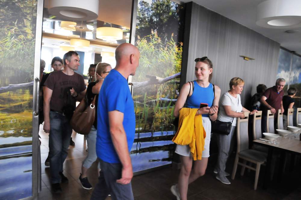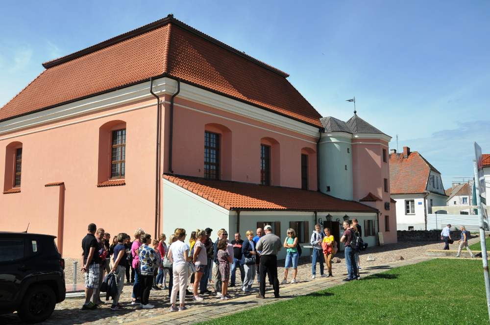 Mimo deszczu kilku odważnych uczestników wyjazdu zrobiło zdjęcie pod tym jakże wymownym Pomnikiem Obławy Augustowskiej. Ostatnim historycznym punktem wyjazdu był tzw. “Dom Turka” w Augustowie. Od początku 1940 do czerwca 1941 kamienica ta była siedzibą NKWD. Areszt umiejscowiony był w podziemiach, zaś na wyższych kondygnacjach znajdowały się biura. W budynku więziono przeciwników władzy radzieckiej oraz osoby przeznaczone do deportacji w głąb ZSRR. NKWD ponownie zajęło budynek jesienią 1944. Od 1945 do 1956 w budynku mieściło się UB. UB torturowało więźniów, W lipcu 1945 budynek był jednym z miejsc przetrzymywania osób schwytanych podczas obławy augustowskiej. W drodze powrotnej zjedliśmy obiad.