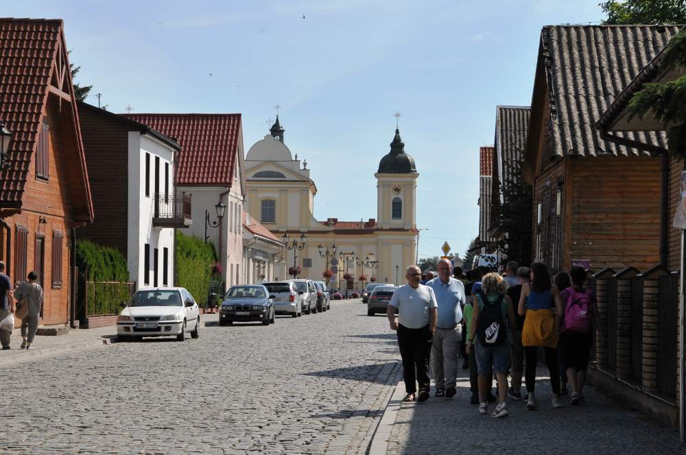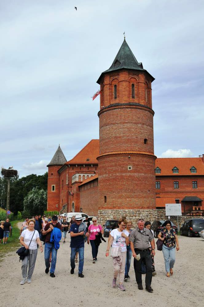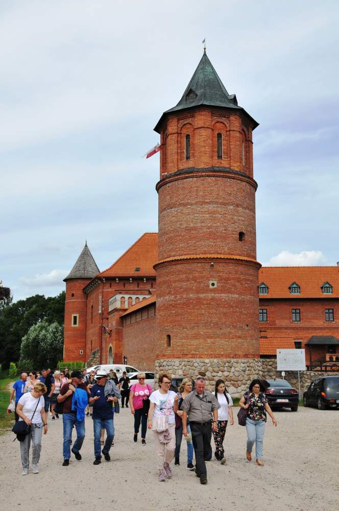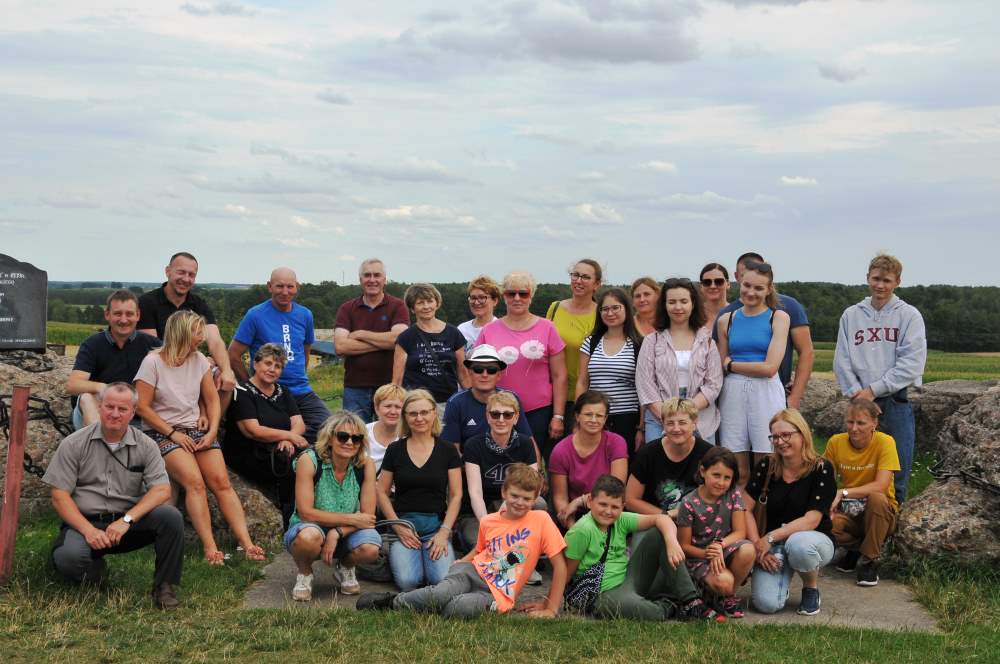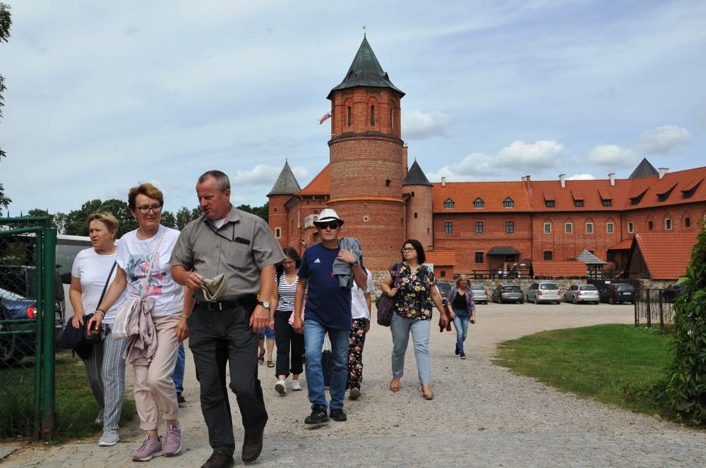 30 lipca o godzinie 8 pięćdziesięcioosobowa grupa mieszkańców gminy Miedzna wyruszyła na patriotyczny szlak po Podlasiu. W Tykocinie spotkaliśmy się z naszym przewodnikiem Romanem, który pokazał nam najciekawsze miejsca w mieście. Zobaczyliśmy Mały i Duży Rynek. Przy pomniku Stefana Czarnieckiego wysłuchaliśmy historii miasta. Następnie w Kościele pw. Świętej Trójcy przed tablicą upamiętniającą mieszkańców Tykocina wywiezionych do niemieckich obozów koncentracyjnych 27 maja 1944 roku chwilą zadumy uczciliśmy pamięć zamordowanych w obozach. Zwiedziliśmy zamek w Tykocinie. W drodze powrotnej zakupiliśmy regionalne przysmaki Podlasia: sękacze, mrowiska, chleb na liściach chrzanu, kwas chlebowy. Na trasie naszego wyjazdu historycznego znalazły się mogiły , w których spoczywają tykocińscy Żydzi zamordowani przez Niemców w 1941 roku. Ów cmentarz znajduje się w lesie przy drodze wiodącej do miejscowości Łopuchowo. Około godziny 12 dotarliśmy do Strękowej Góry, gdzie głównym punktem jest Pomnik kpt. Raginisa oznaczony jako Wzgórze 126. Jest on położony zaraz przy drodze krajowej 64 między Białymstokiem a Łomżą. Oprócz pięknych widoków na rozlewiska Narwi, znajdują się tutaj: grób i pozostałości upamiętniające tutejszą walkę. Jak sama nazwa mówi, Góra Strękowa jest świetnym punktem obserwacyjnym, który był także wykorzystany strategicznie podczas II wojny światowej. Podczas najazdu wojsk niemieckich dowodził tutaj kapitan Raginis, który przez dwie doby wraz z lokalnymi żołnierzami odpierał ataki wroga. Tutejsi bohaterzy walczyli do ostatniego tchu, a kpt. Raginis po heroicznej walce zdetonował finalnie siebie i schron ostatnim granatem nie chcąc dać się pojmać. W hołdzie bohaterskiej walki miejsce to jest nazywane „Polskimi Termopilami”. Przejeżdżając przez Wiznę podziwialiśmy piękne murale. Przy jednym z nich wykonanym na podstawie zdjęcia zatrzymaliśmy się na chwilę. W Augustowie czekała nas chwila wytchnienia podczas rejsu statkiem do Studzienicznej. Tam odwiedziliśmy Sanktuarium. Po rejsie pojechaliśmy do Augustowa na obiadokolację w restauracji Albatros. Jeszcze kilka zdjęć na ławeczce z Beatą z Albatrosa i jedziemy do hotelu Loft w Suwałkach.