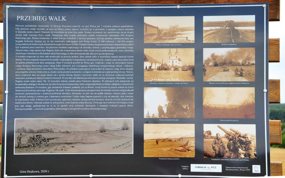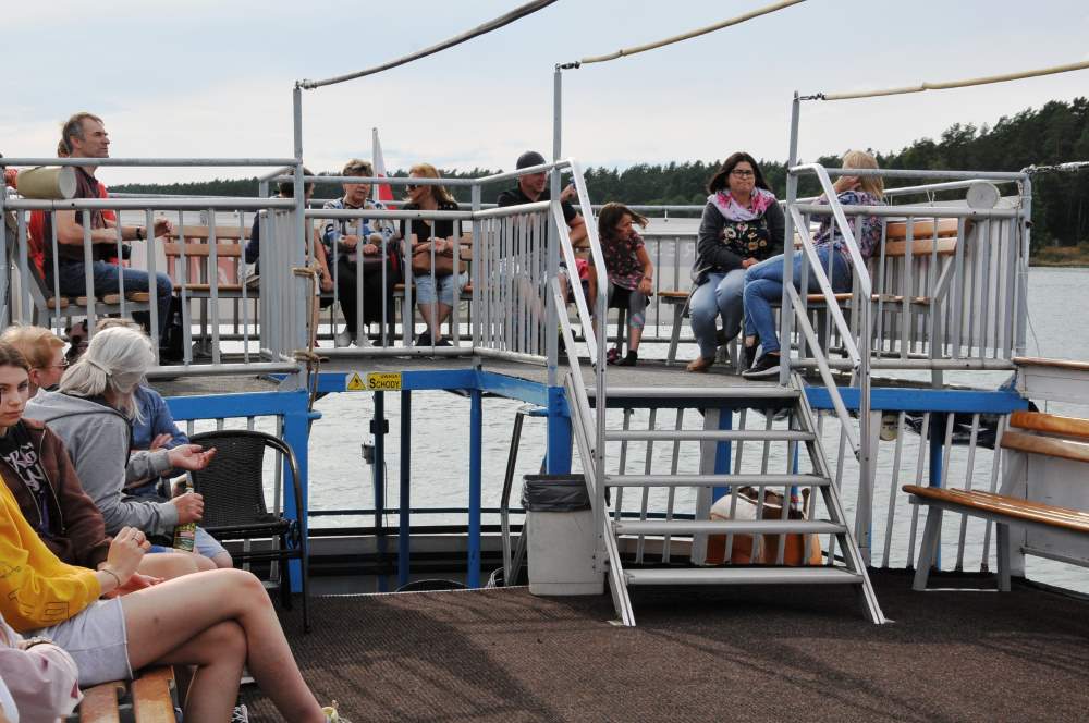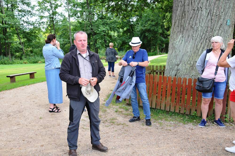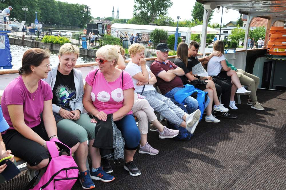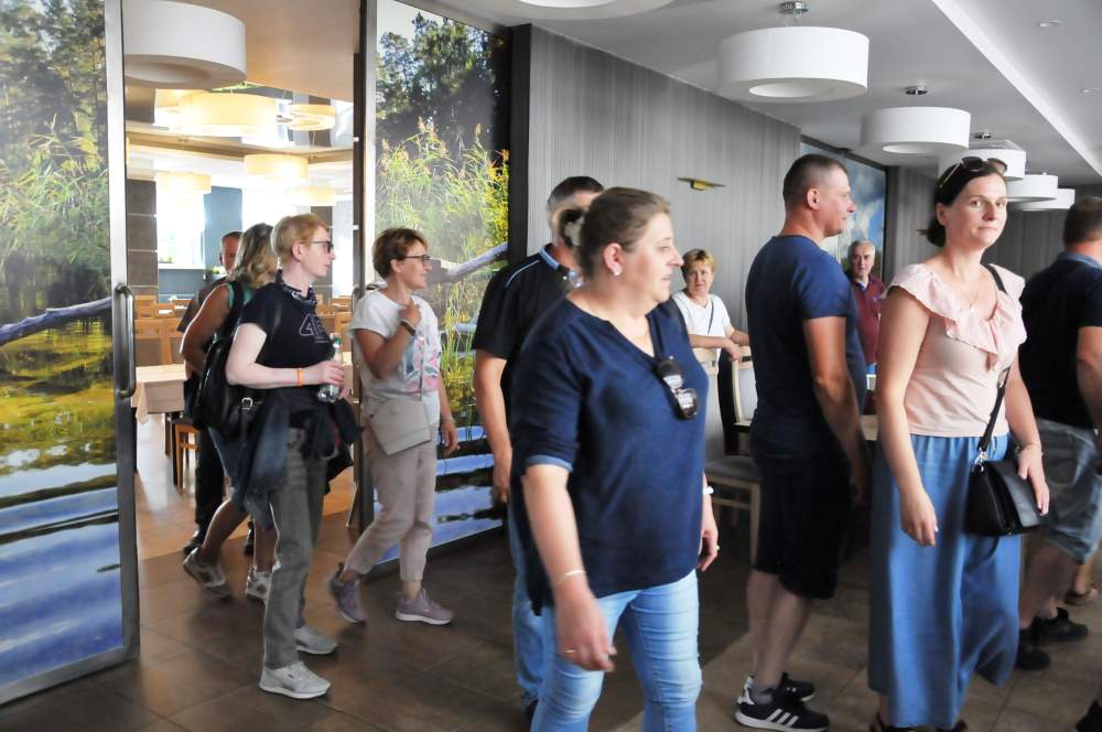 30 lipca o godzinie 8 pięćdziesięcioosobowa grupa mieszkańców gminy Miedzna wyruszyła na patriotyczny szlak po Podlasiu. W Tykocinie spotkaliśmy się z naszym przewodnikiem Romanem, który pokazał nam najciekawsze miejsca w mieście. Zobaczyliśmy Mały i Duży Rynek. Przy pomniku Stefana Czarnieckiego wysłuchaliśmy historii miasta. Następnie w Kościele pw. Świętej Trójcy przed tablicą upamiętniającą mieszkańców Tykocina wywiezionych do niemieckich obozów koncentracyjnych 27 maja 1944 roku chwilą zadumy uczciliśmy pamięć zamordowanych w obozach. Zwiedziliśmy zamek w Tykocinie. W drodze powrotnej zakupiliśmy regionalne przysmaki Podlasia: sękacze, mrowiska, chleb na liściach chrzanu, kwas chlebowy. Na trasie naszego wyjazdu historycznego znalazły się mogiły , w których spoczywają tykocińscy Żydzi zamordowani przez Niemców w 1941 roku. Ów cmentarz znajduje się w lesie przy drodze wiodącej do miejscowości Łopuchowo. Około godziny 12 dotarliśmy do Strękowej Góry, gdzie głównym punktem jest Pomnik kpt. Raginisa oznaczony jako Wzgórze 126. Jest on położony zaraz przy drodze krajowej 64 między Białymstokiem a Łomżą. Oprócz pięknych widoków na rozlewiska Narwi, znajdują się tutaj: grób i pozostałości upamiętniające tutejszą walkę. Jak sama nazwa mówi, Góra Strękowa jest świetnym punktem obserwacyjnym, który był także wykorzystany strategicznie podczas II wojny światowej. Podczas najazdu wojsk niemieckich dowodził tutaj kapitan Raginis, który przez dwie doby wraz z lokalnymi żołnierzami odpierał ataki wroga. Tutejsi bohaterzy walczyli do ostatniego tchu, a kpt. Raginis po heroicznej walce zdetonował finalnie siebie i schron ostatnim granatem nie chcąc dać się pojmać. W hołdzie bohaterskiej walki miejsce to jest nazywane „Polskimi Termopilami”. Przejeżdżając przez Wiznę podziwialiśmy piękne murale. Przy jednym z nich wykonanym na podstawie zdjęcia zatrzymaliśmy się na chwilę. W Augustowie czekała nas chwila wytchnienia podczas rejsu statkiem do Studzienicznej. Tam odwiedziliśmy Sanktuarium. Po rejsie pojechaliśmy do Augustowa na obiadokolację w restauracji Albatros. Jeszcze kilka zdjęć na ławeczce z Beatą z Albatrosa i jedziemy do hotelu Loft w Suwałkach.