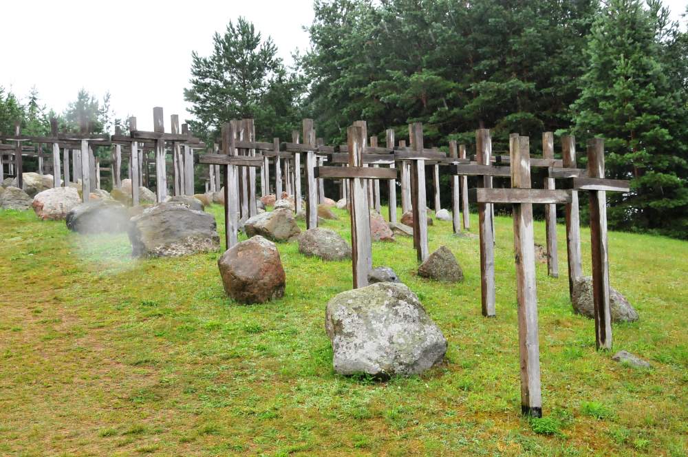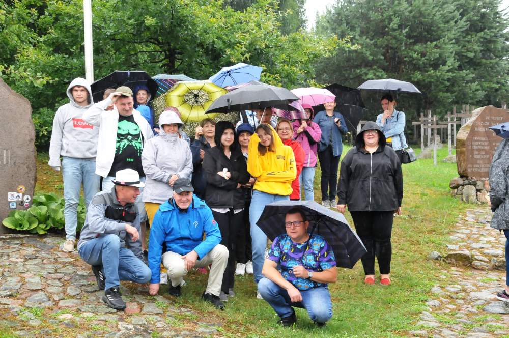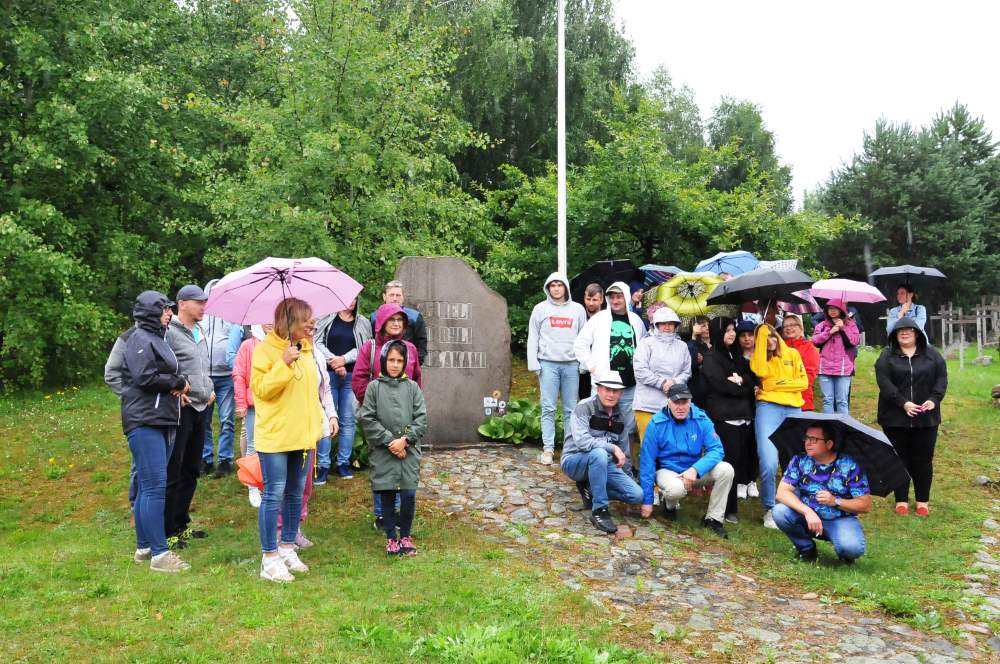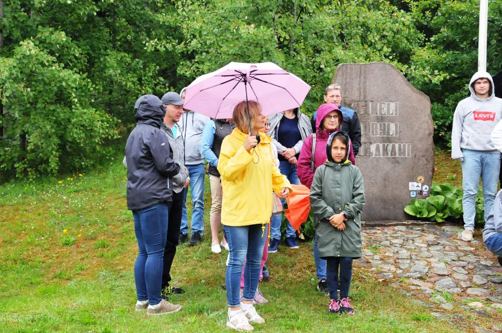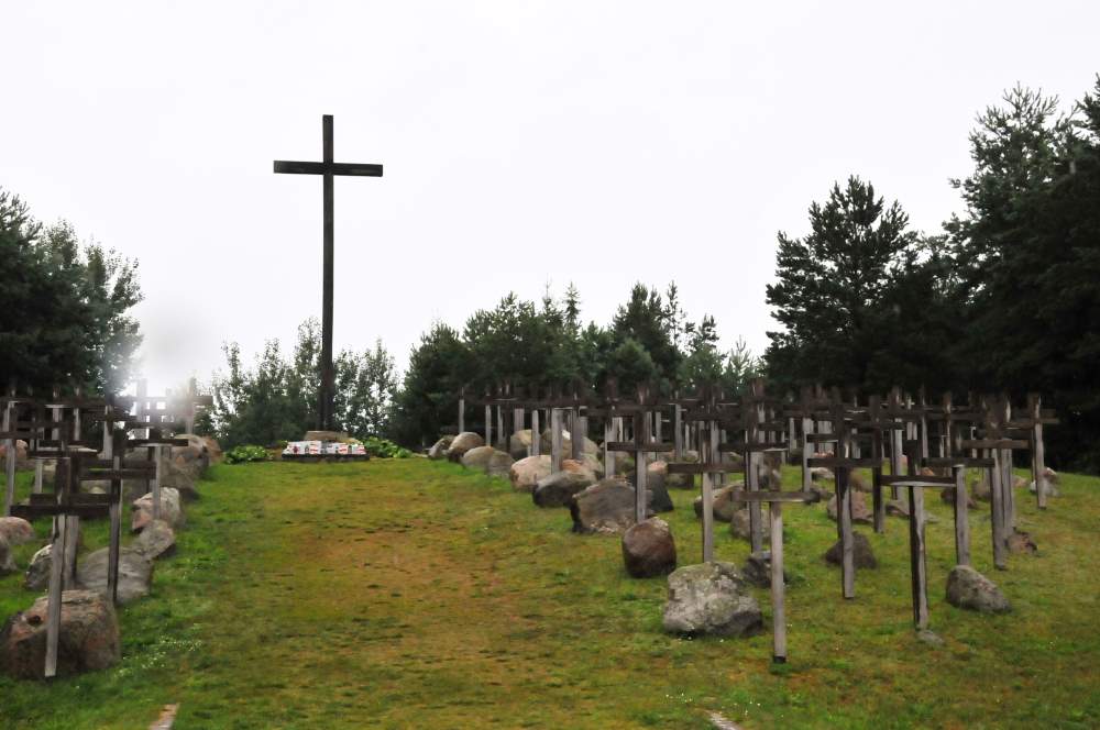 Kolejnym punktem były Giby, gdzie odwiedziliśmy Pomnik Ofiar NKWD zamordowanych w lipcu 1945 roku oraz wzgórze krzyży pamięci pomordowanych w obławie Augustowskiej. 15 lipca 1945 roku oddziały Armii Krajowej Obywatelskiej zostały okrążone przez kilku tysięczną armię sowiecką w pobliżu miejscowości Giby. Około dwustu partyzantów pod dowództwem sierżanta Władysława Stefanowskiego ps. “Grom” i sierżanta Józefa Sulżyńskiego ps. “Brzoza” zostało rozbitych przez przeważające siły nieprzyjaciela. Sowieci aresztowali GROMA . Grom wraz ze schwytanymi partyzantami został dołączony do osób zatrzymanych w czasie obławy augustowskiej.